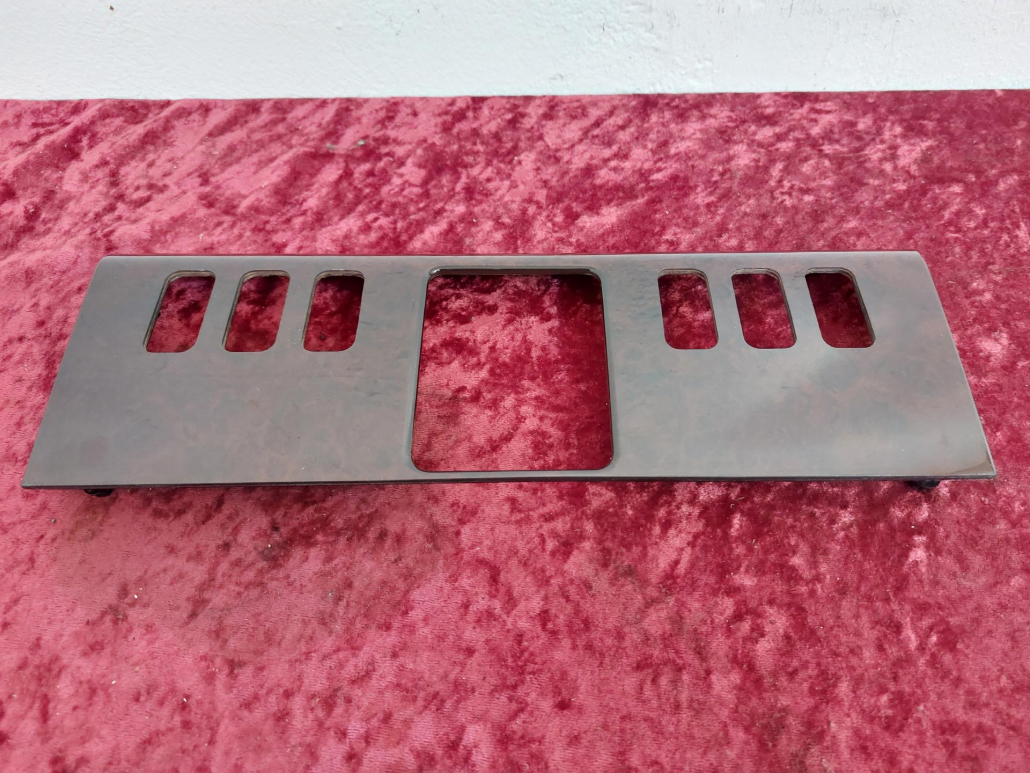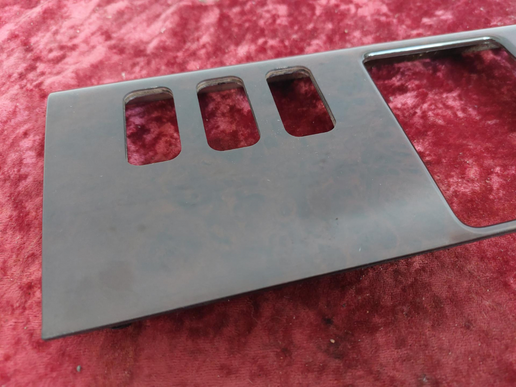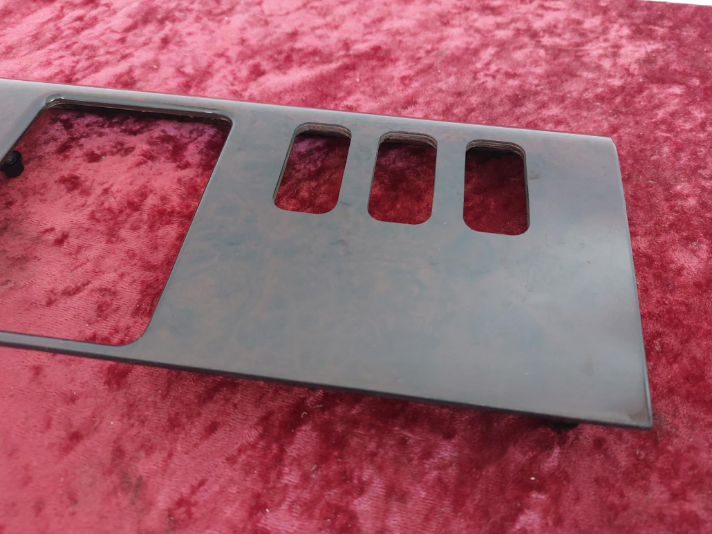 Es handelt sich um die Holzausführung in Wurzelnuss. Es sind Öffnungen für sechs Schalter vorhanden.
